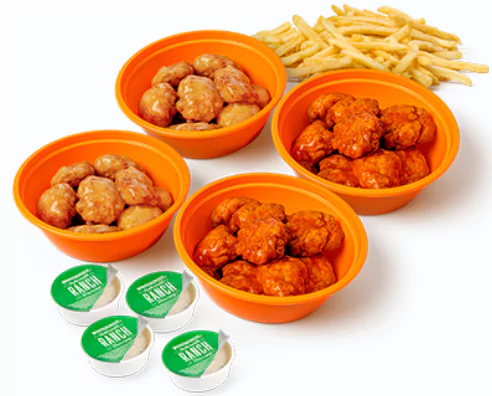 The 36 WhataWings® Bundle is the best choice for families, game nights, or group hangouts. With five wing flavors, multiple sauces, and side options, it offers maximum variety and value at $45.99. Whether you like spicy Buffalo, sweet Honey BBQ, or indulgent Honey Butter, this bundle guarantees everyone at the table is satisfied.